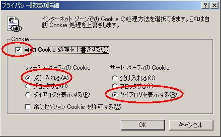 Cookie設定を以下のようにする